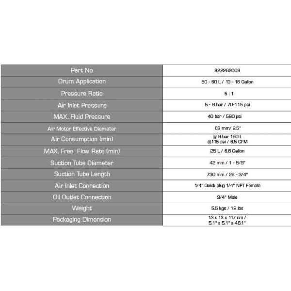 Oil Pump – Fire Lube 5 : 1, designed for the demanding needs of the mining sector. This powerful pump delivers exceptional oil transfer capabilities, ensuring rapid and efficient lubrication of heavy machinery. Built to endure harsh mining environments, it features a robust construction and user-friendly operation. The Fire Lube 5-1 minimizes downtime and enhances equipment longevity by preventing wear and tear on essential components. Ideal for maintaining peak productivity, this high flow rate pump is a crucial asset for any mining operation.