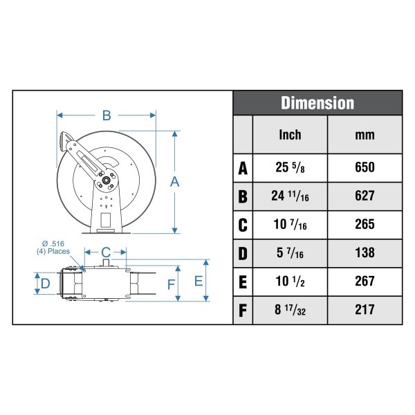 REEL MASTER 1/2 Inch I.D. Heavy Duty Grease, Air & Oil Hose Reel