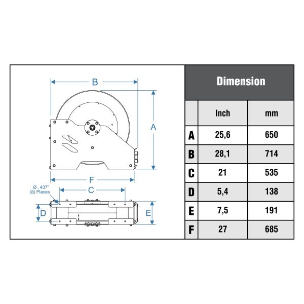 Full width frame has the greatest amount of mounting area and overall strength of reels within its class.